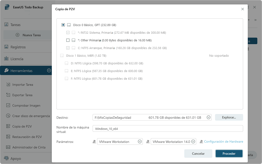 EaseUS Todo Backup es bastante intuitivo y funciona como debe ser. Lo usé para convertir muchos de los servidores a VM's y todo fue sin un solo problema incluyendo la restauración a un hardware diferente.