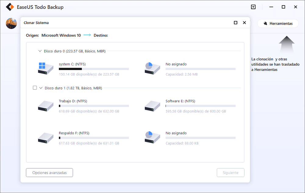 Las funciones de clonación del software de copia de seguridad de EaseUS facilitan la migración del sistema a un nuevo disco y la actualización del sistema actual.