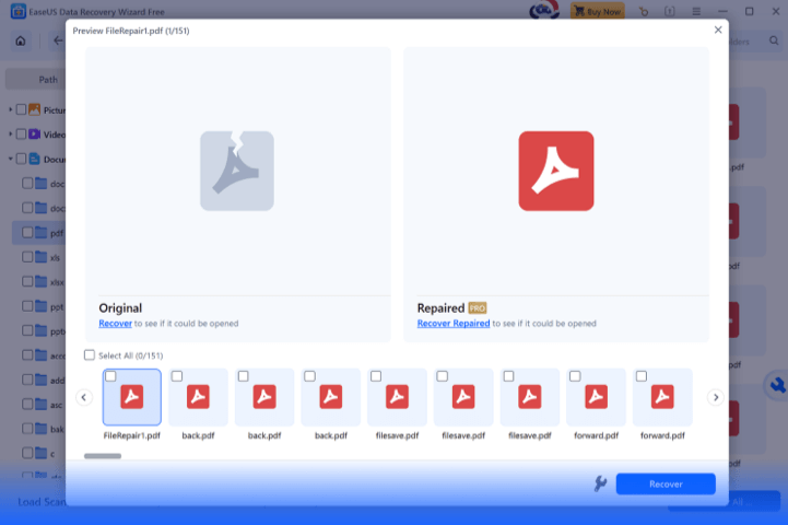Una interfaz de recuperación de datos sencilla, adecuada para todos los usuarios, que no requiere operaciones complicadas. EaseUS identifica automáticamente si tus archivos están fragmentados y los vuelve a ensamblar.