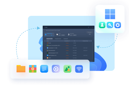 EaseUS Todo PCTrans Pro migra todo al nuevo ordenador y lo hace sentir como el antiguo. Cubre todo lo que tienes. No sólo los archivos y programas - tus cuentas, contraseñas, perfiles, personalización y configuración se copian para la transferencia.