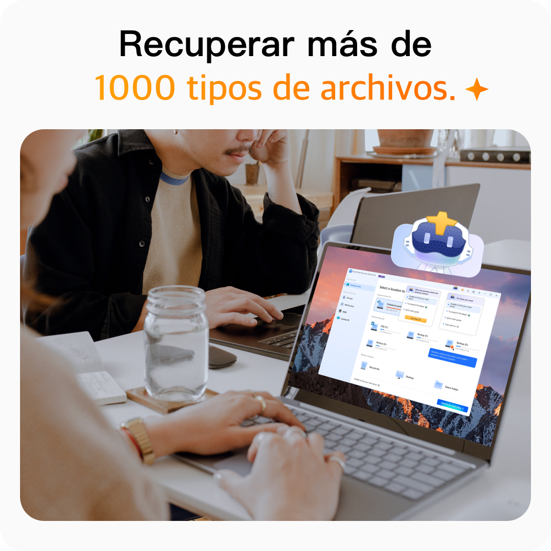 Una solución de recuperación de datos todo en uno que puede recuperar datos de varios escenarios de pérdida de datos. Elija un disco duro, escanee para encontrar archivos eliminados y previsualice todos los archivos recuperables. Hacemos que la recuperación de datos sea inteligente, fácil y poderosa.
