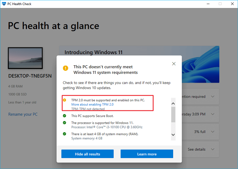 Sin embargo, cuando Microsoft anunció Windows 11, la aplicación no estaba a la altura, por lo que la empresa la retiró temporalmente. Afortunadamente, PC Health Check de Microsoft vuelve a estar en línea y en funcionamiento. Si tu PC no cumple los requisitos de hardware de Windows 11, la herramienta en línea de comprobación de compatibilidad con Windows 11 te dirá por qué y te proporcionará enlaces para obtener más ayuda.